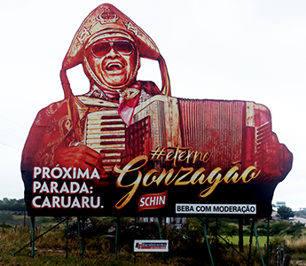 Patrocinadora das festas juninas locais, a marca de cerveja Schincariol aproveitou a época para lembrar um dos maiores nomes do forró, Luiz Gonzaga, através de um outdoor gigante. A peça de mídia out of home foi exibida na BR-232, rodovia federal que leva até o município de Caruaru/PE, junto a outro painel rodoviário com uma imagem da cerveja. Ambos mediam nada menos que 85m² cada!